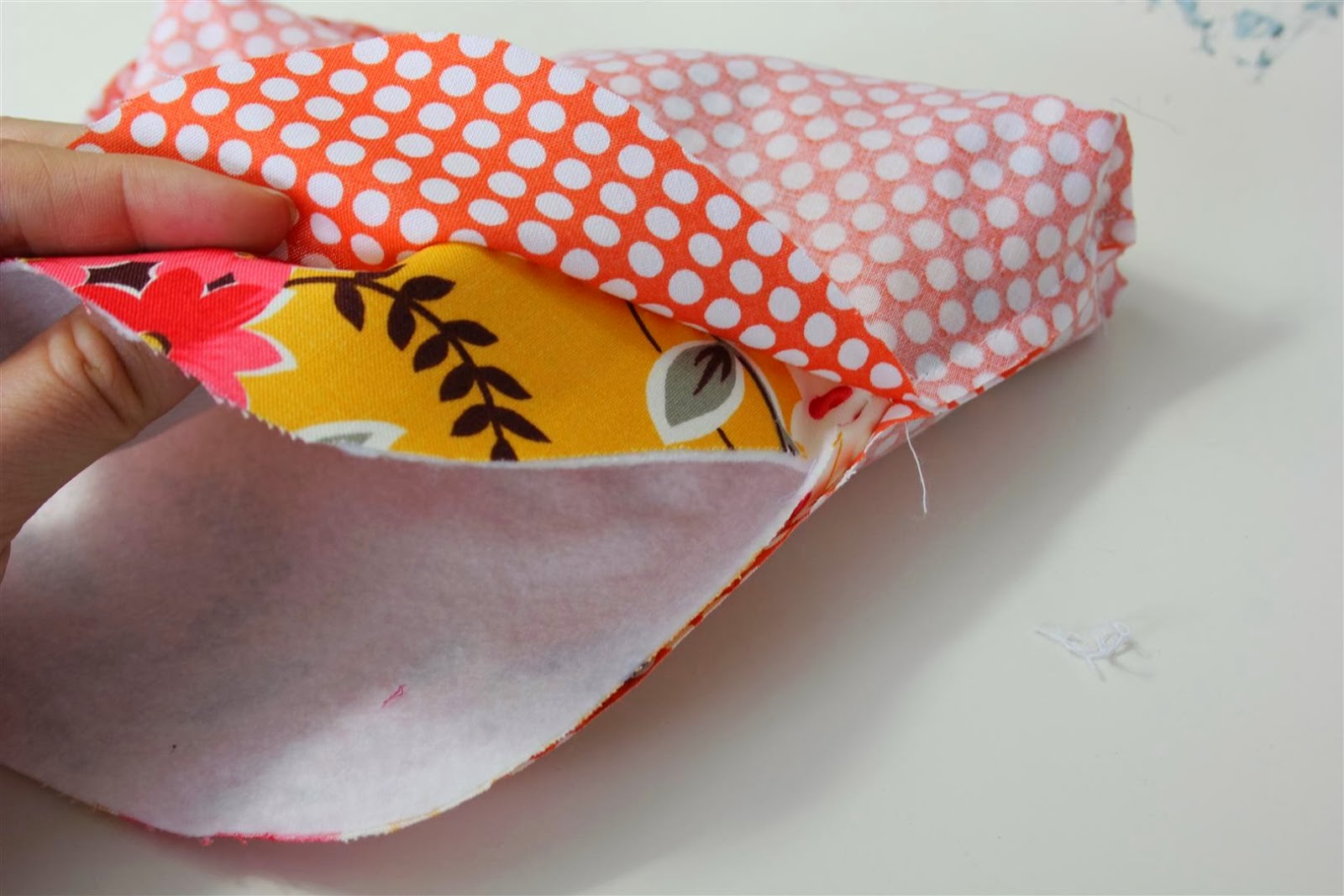 1. Usando o molde que acabamos de fazer vamos cortar: 2 partes de tecido exterior, 2 partes de tecido para o forro e 2 parte de enchimento.