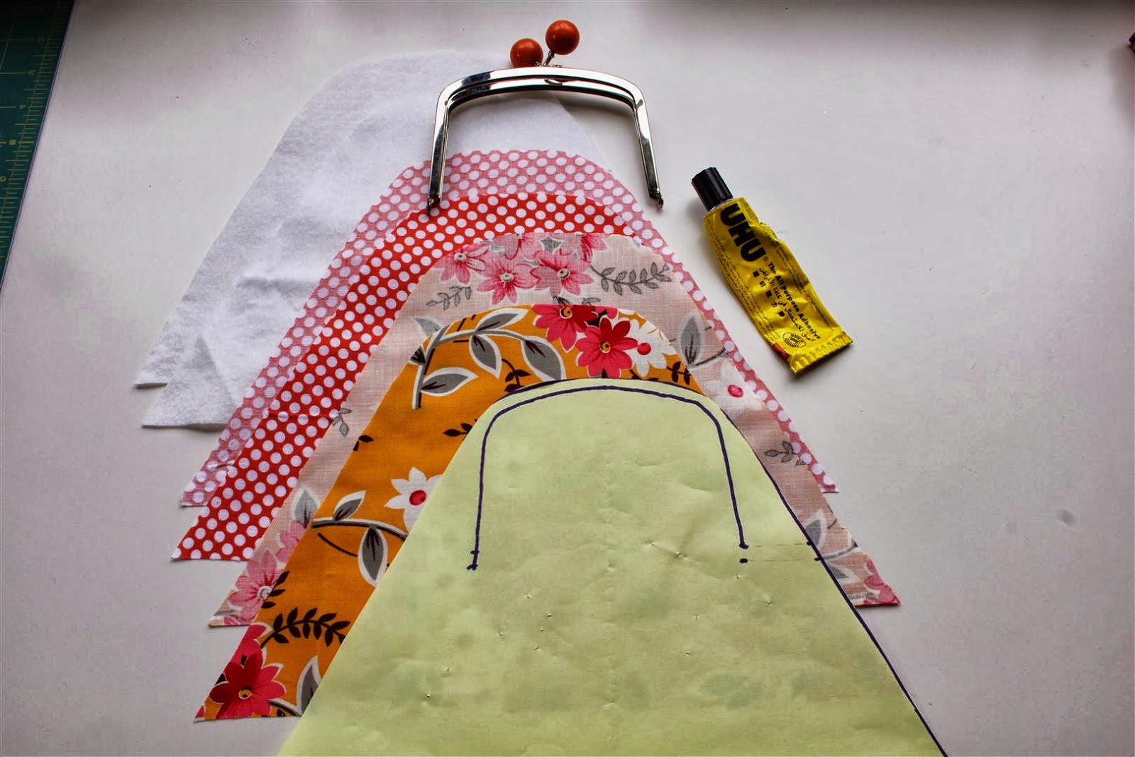 2. Desenhamos o contorno do nosso fecho e traçamos uma linha que vai da parte superior até à largura que vamos querer que o nosso porta-moedas tenha. O porta moedas pode ficar mais arredondado ou mais largo nos cantos.